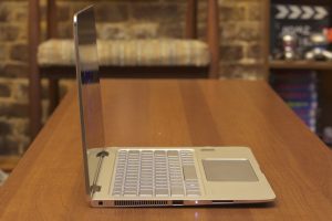Where the Spectre trumps the Yoga is in its general construction. Even the top-end Yogas are predominantly made of plastic, but the x360 is all aluminum. The chassis is surprisingly thin but still very solid. There’s no flexing throughout the body of the laptop, and you have to press down hard to reveal any flex in the keyboard area. At 15.9mm thick and 3.3 pounds, it’s by no means the smallest or lightest 13.3-inch laptop you can buy, but it’s competitive with most of the other Haswell and Broadwell Ultrabooks we’ve seen.