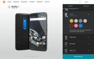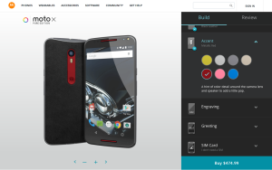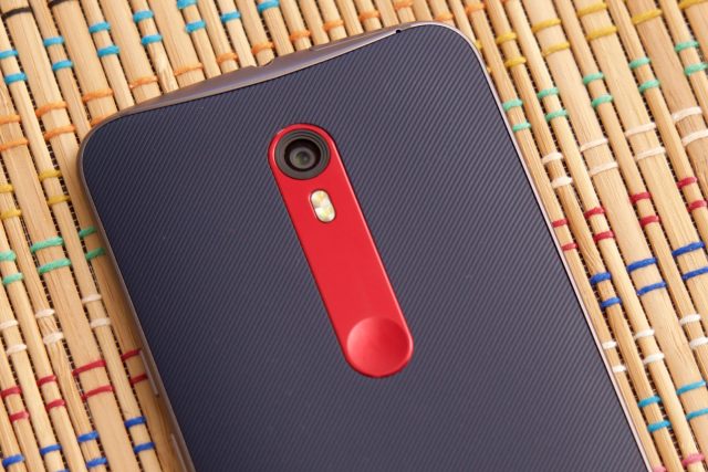 Motorola’s review program was actually pretty interesting this time around—the company gave out promo codes and then let us use Moto Maker to customize our own models. I chose a black front with a navy blue back and a nice bright red accent, which colors both the small cutout in the back of the phone and the speaker grills at the top and bottom.
