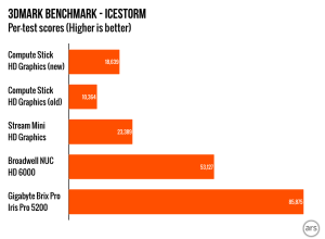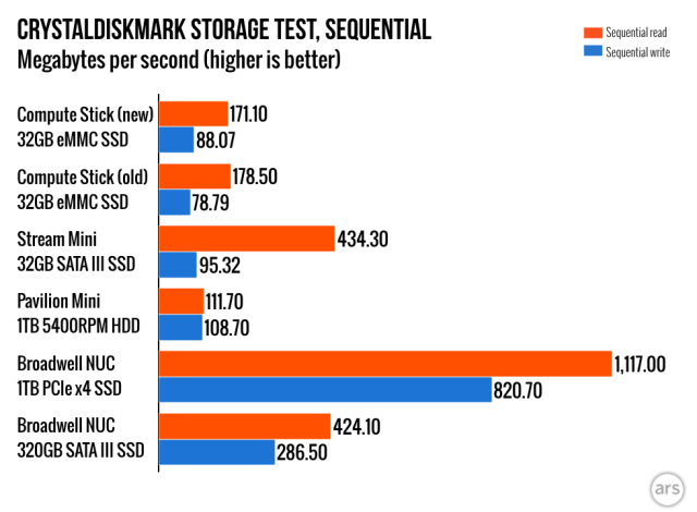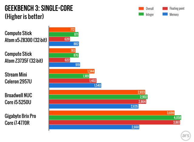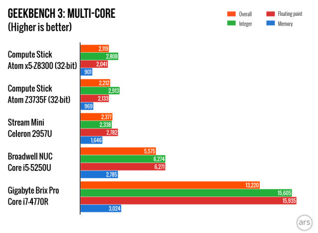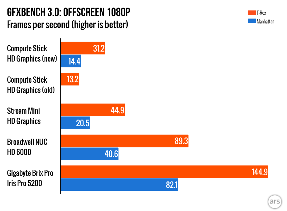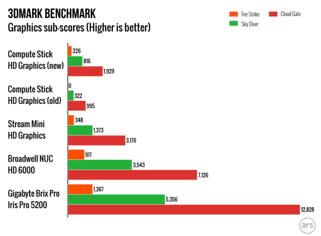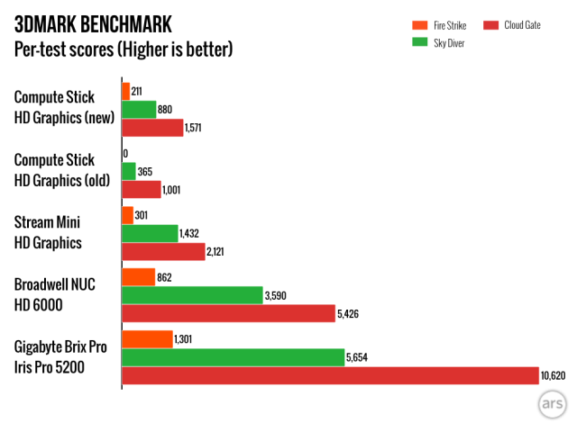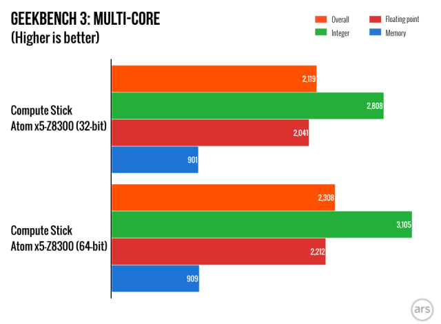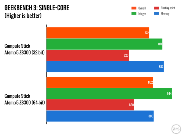Most of the stuff I wrote in our review of the original Compute Stick back in April still stands, but a lot has happened between then and now. Intel has released several BIOS updates and a few driver updates for the graphics, Wi-Fi, and Bluetooth. And while it shouldn’t change performance all that much, anyone who bought the stick with Windows 8.1 installed can upgrade it to Windows 10 provided you don’t run into disk space limitations. The following impressions are based on a clean 32-bit Windows 10 installation with the latest BIOS and drivers.