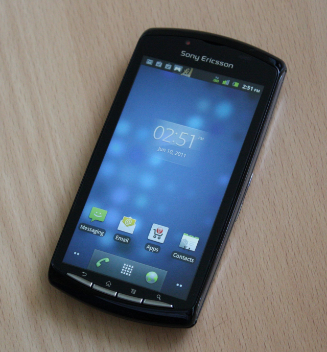 The Xperia Play is hefty for a phone (it’s 16 millimeters thick and weighs 175 grams) but on the thin side for a handheld gaming console. Both the front and back panels are curved plastic, making it quite comfortable to hold, and though it feels heavy in the hand, it’s not a chore to hold while playing a game.