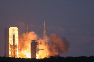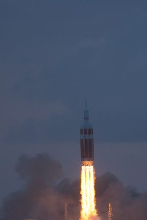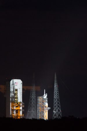 CAPE CANAVERAL, FLORIDA—After a delay yesterday due to stuck cryogenic valves, NASA’s Orion EFT-1 mission departed from Space Launch Complex 37B from Cape Canaveral this morning at 7:05am EST. The launch marks an important milestone: it’s the first attempt since the Apollo missions ended 42 years ago to put a new spacecraft designed for manned missions beyond low earth orbit (LEO).