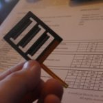 A tiny piece of plastic contains a special material sandwiched between two …