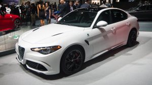 We saw the fire-breathing Giulia Quadrifoglio—which now holds a Nürburbring lap record for four-door production cars—last November in Los Angeles. And the $75,000, 505hp (377kW) M3 beater was present and correct at the Javits Center in a rather fetching white as well as the traditional Alfa Romeo red. The twin turbo 2.9L V6 is indeed exciting, but the less powerful versions—the Giulia and Giulia TS—are arguably the more important cars for the Italian OEM.