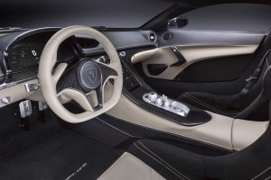 The Concept_One uses a pair of electric motors fed by an 82kWh lithium-ion battery pack and all-wheel torque vectoring that Rimac says provides the functions of traction control, stability control, and antilock braking by constantly calculating the optimum torque for each of the four wheels. 0-62mph (0-100km/h) is said to be dispatched in 2.6 seconds, and it should hit 186mph (300km/h) in just 14.2. Top speed won’t rival the Bugatti, though—it’s limited to 220mph (355km/h).