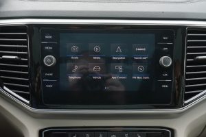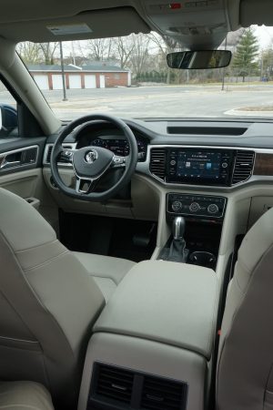 In the Atlas, the engine of your choice is paired with an eight-speed automatic transmission and front-wheel drive, although AWD is an option with the V6 engine and is standard on the SEL Premium. Also included with the SEL Premium package are LED taillights, leather seats, parking-assist, adaptive cruise control, lane-keep assist, an eight-inch touch display, and VW’s Digital Cockpit. More on the Digital Cockpit below. By way of comparison, the base model S gets a backup camera, bog-standard cruise control, a 6.5-inch touch display, LED headlights, and bench seating in the second row.