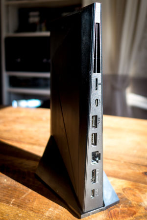The Shield can be positioned horizontally or vertically, but it’s a wee bit wobbly in its vertical position unless you purchase a separate stand for a substantial £24.99. One word of advice if you do take the plunge, though: Nvidia has used some sort of black magic to create what might just be the stickiest rubber coating in existence and applied it to the bottom of the stand. More often than not it simply wouldn’t budge from the surface it was on when I needed to move it, and I ended up having to pry it up with a fish slice.