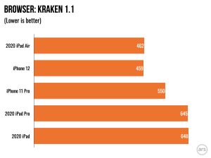 The iPad Air has the same processor that was included in this year’s new iPhones, the iPhone 12 and iPhone 12 Pro. Dubbed the A14, it’s an iterative step up over its predecessor (last year’s A13) in terms of both CPU and GPU power, but Apple says it nearly doubles machine-learning performance.