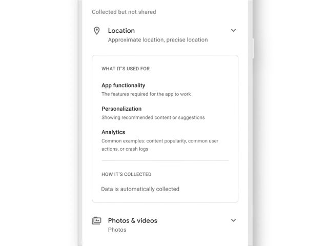 Note that while the section will be appearing for users starting today, it might not be filled out by developers. Google’s deadline for developers to provide privacy information is July 20. Even then, all of this privacy information is provided by the developer and is essentially working on the honor system. Here’s how Google describes the process to developers: