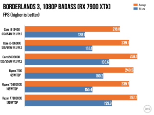 | Ryzen 7 7600X | $249 (no fan) | 6c/12t | 4.7/5.3 GHz | 38MB (6+32) | 105 W (142 W PPT) |