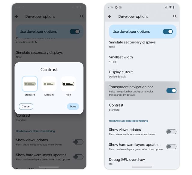 First up is a new logo! Android’s last big rebranding happened with Android 10, and just a few years later, it’s time for a new coat of paint. The wordmark is now capitalized, and the little Android “bugdroid” mascot, usually a disembodied head next to the Android wordmark, is getting its body back. The bugdroid is now fully rendered in 3D, and in keeping with Google’s Material Design guidelines, it comes in a variety of colors and styles. If you ask me, bugdroid in 3D looks a bit pudgy.