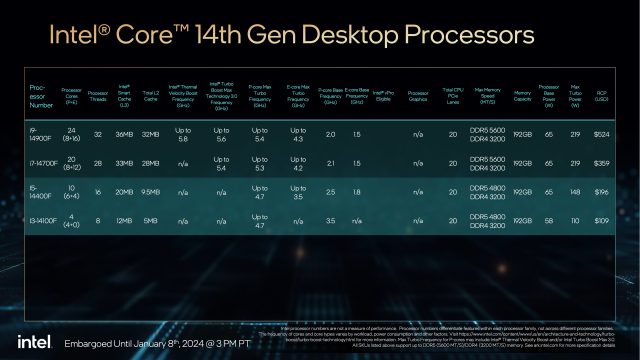 Intel usually uses CES to fill out the processor lineups that it launched late the year before, and that hasn’t changed this year. The company has announced a full range of 14th-generation Core desktop CPUs, some new 14th-generation Core CPUs for high-end gaming and workstation laptops, and the first non-Ultra chips to bear the new “Core 3/5/7” branding that sheds the generational branding entirely. We’ll go over the updates shortly.