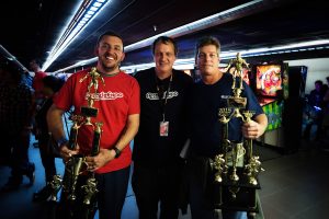 Some of the weekend’s tournament winners, Matt Topper (L) and Ron Rezendes (R) pose with John Weeks, the owner of the facility.