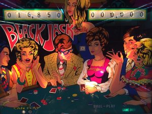 Bally’s Blackjack, from 1977. Though this looks like an electromechanical game, it actually uses solid state circuits.
