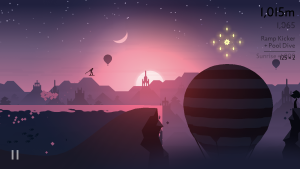 Alto’s Odyssey is an example of the endless runner genre at its most basic level—but also at its most sublime. You play as a snowboarder riding sandy hills of the desert (Alto’s Adventure was actually set in a snowy environment), grinding on ancient ruins, and leaping over chasms to rack up trick points and achieve various objectives to unlock more gear and characters to play with.