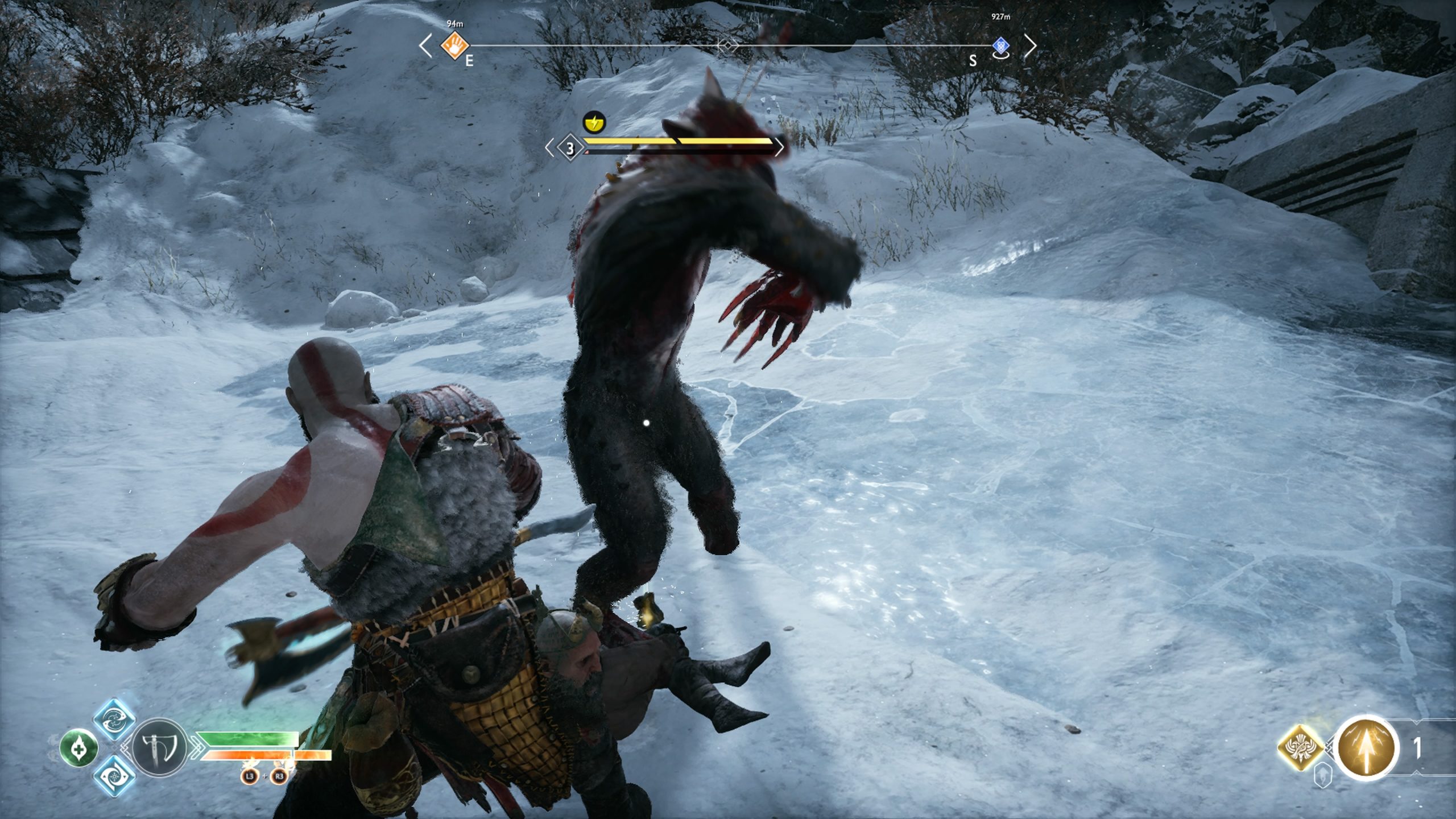 This concept drives the new God of War reboot for the PS4, and at the start it plays out a lot like the cringe-worthy, sitcom-level twist you’d expect from such a pitch. Kratos is now bearded, slightly more aged, and relocated to the cold and unfamiliar climes of Scandinavia. He’s paying his final respects to a wife we don’t get to see. Left behind with Kratos is a son, the small and frail Atreus, who is over-eager to accompany his dad on a quest to spread his mom’s ashes from “the highest peak in all the realms.” (That’s a welcome respite from the usual “save/destroy the world” impetus driving most action games, at least.)