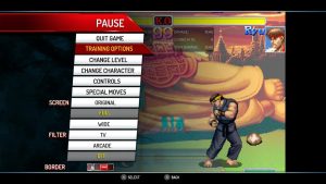 The real extra draws outside of a convenient and legal way to play all of the old games on PC or modern consoles are the online and training modes. Only four of the games support online play with training options: Hyper Fighting, Super Turbo, Alpha 3, and Third Strike. Each support standard ranked play, with a leaderboard, and casual matches, but the standout feature is the lobby system. When you set up a lobby you can choose which of the four titles you want selected, from all to one, and within every match both players pick which title they’d like to play. If there’s a conflict, one is randomly picked. It’s a blast to jump from one game to the next, playing a variety of characters and styles in one online session. This feature really brings back the arcade experience of easily walking with your quarter to the next game.