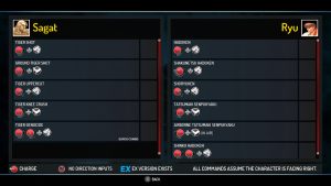 The special moves are laid out clearly for easy look up during practice sessions; you can only review the moves for a given fight’s combatants.