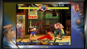 Capcom is advertising the games as arcade perfect, and inside they’re obviously running some sort of emulator for the original ROMs. Accuracy appears to be excellent, with funny glitches from the original arcade versions intact. These are not console ports, and they don’t have much in the way of extra home features, such as Street Fighter Alpha 3‘s World Tour mode from the PlayStation 2 port. But in a nod to convenient play with friends, there is a Versus mode is available for all 12 games that allows picking Player 1 and Player 2 characters and the stage, bypassing the arcade trappings for a direct fighting experience.