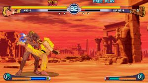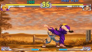 As noted earlier, the 12 game count is a bit padded, Street Fighter 1 is a novelty you’re probably only going to try once or twice, and most people will skip the earlier versions of Street Fighter II for the more polished later versions and their extra features. But it’s a lot of fun to easily load up a more obscure title like Street Fighter III: Second Impact, which features beautiful sprite art and some of the coolest stages of the whole series. Backgrounds switch from dark and rainy to bright and sunny, new areas open up between rounds, and Elana’s Africa stage features a bridge that collapses between rounds, dropping the players down to a new level before continuing the fight.