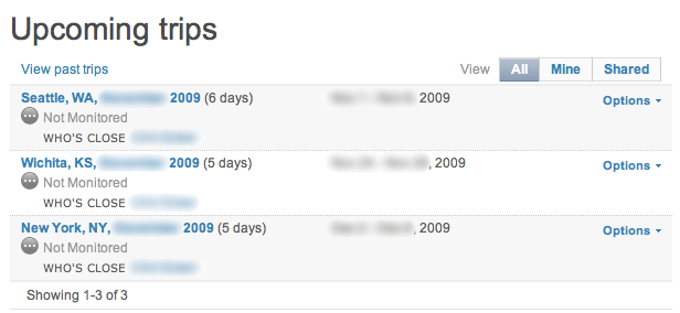 The beauty in Tripit is its simplicity—a key component for someone who is busy and/or forgetful. When you sign up, you can associate certain e-mail accounts (you can add more than one) with your Tripit account. Then go ahead and book your flight, hotel, rental car, and whatever else you can come up with at any of the many sites that offer such a service. When the confirmation e-mail comes in, don’t think—just forward it on to plans@tripit.com.