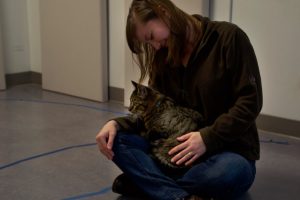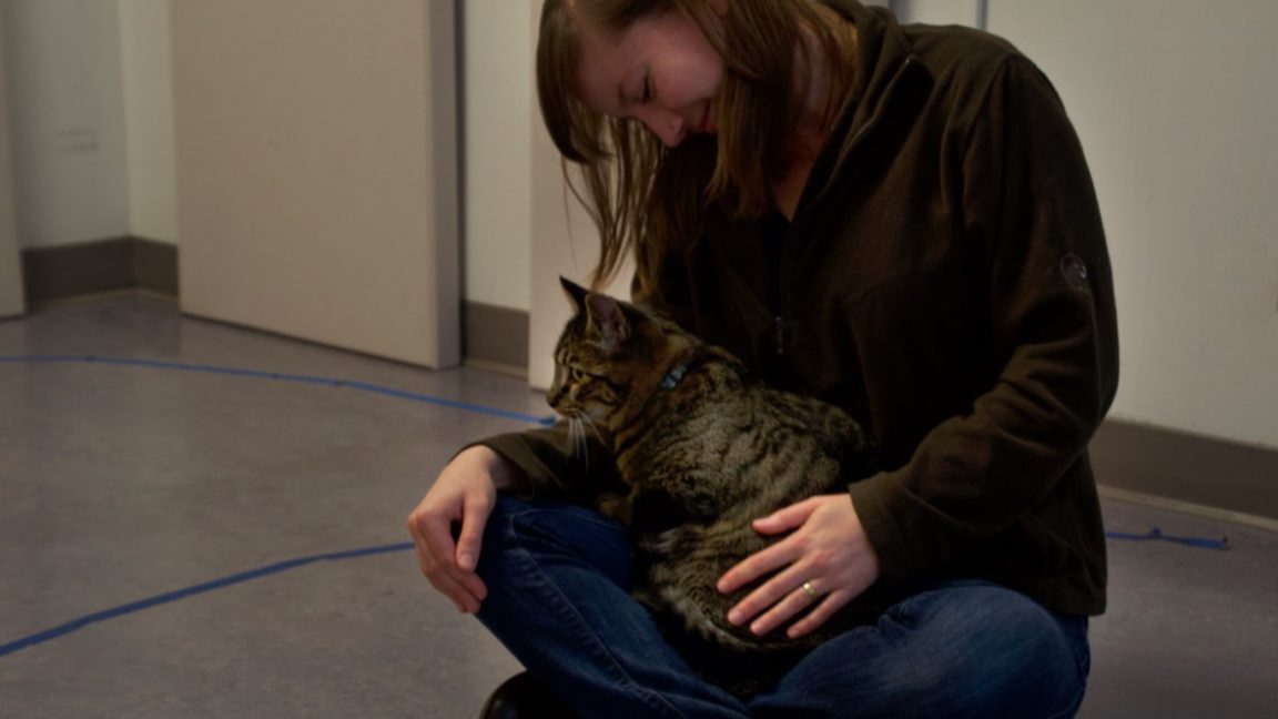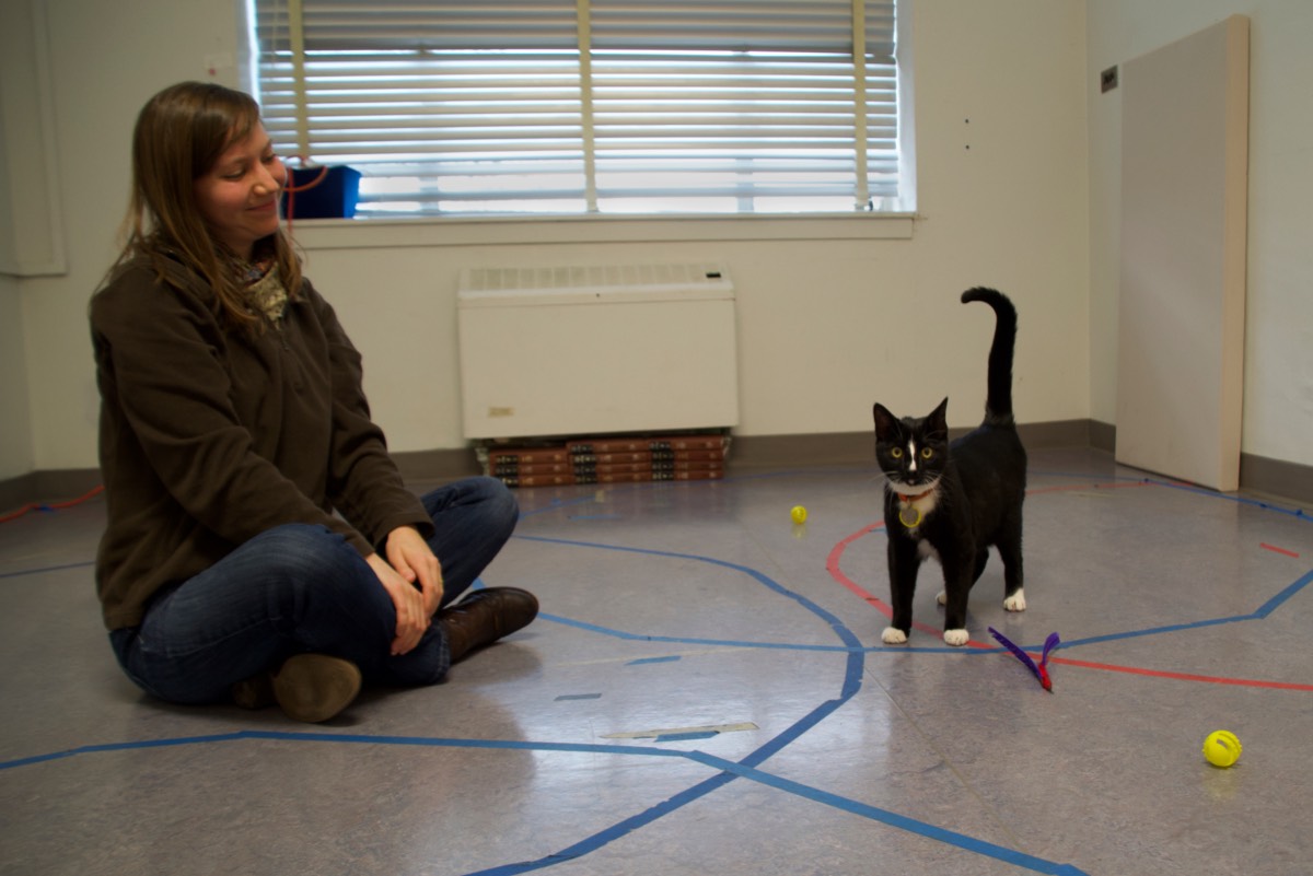There have been a number of attachment studies on human infants, primates, and dogs, usually involving tracking how the subjects respond after being left alone in an unfamiliar room for several minutes, followed by a reunion with their caregivers. Vitale designed her feline study along similar lines. She recruited local cat and kitten owners to bring their pets to OSU’s Human-Animal Interaction Lab. They used both kittens (between 3 and 8 months old) and cats in the study, because they wanted to verify that attachment behavior persisted into adulthood.