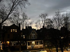 The sky darkened. Automatic porch lights flicked on at 3:15 pm, then street lights, then car lights, for those driving to somehow more important things. People on front lawns cheered, clapped, and quietly couldn’t believe it. When it was over, I heard a neighbor say they forgot their phone inside. Blank walked over and offered to email her some shots he took. It was very normal in Buffalo, even when it was strange.